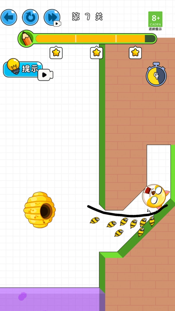2、在屏幕上画线,保护狗头避免它被蜜蜂伤害。