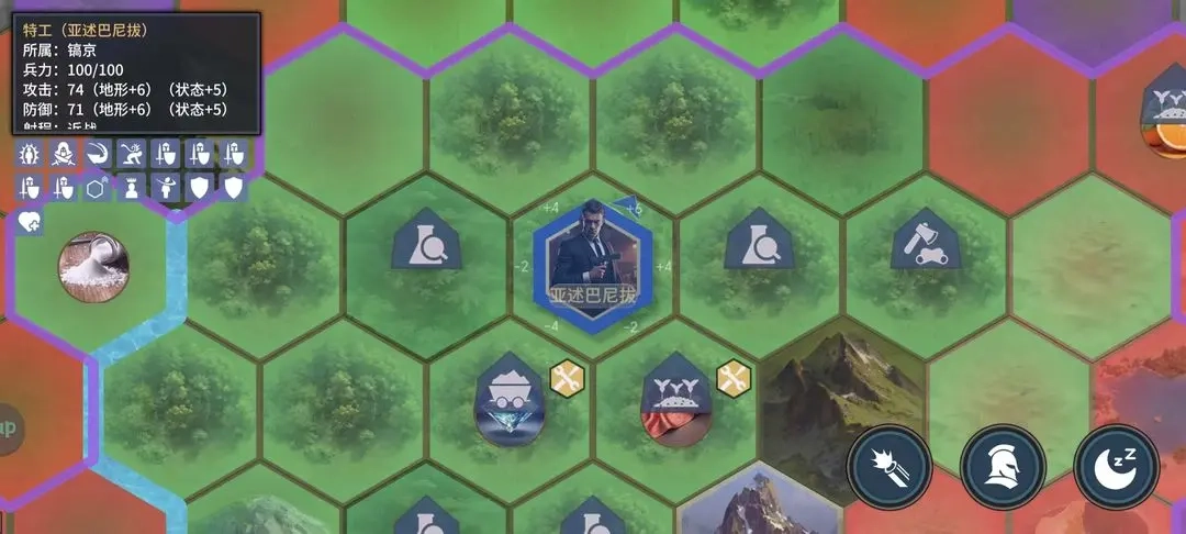选择胜利奖励时,要尽量提前规划好主力部队的发展方向,着重考虑地形和兵种加成,这些加成积少成多效果会很显著。值得注意的是,丘陵和森林地形能同时享受两种战书的加成。就像我截图里的特工,地形加成达到6+6,状态加成也有5+5(配置了两个步兵战书、两个森林战书和一个丘陵战书),这样的加成效果差不多相当于提升了两个时代的攻防水平。