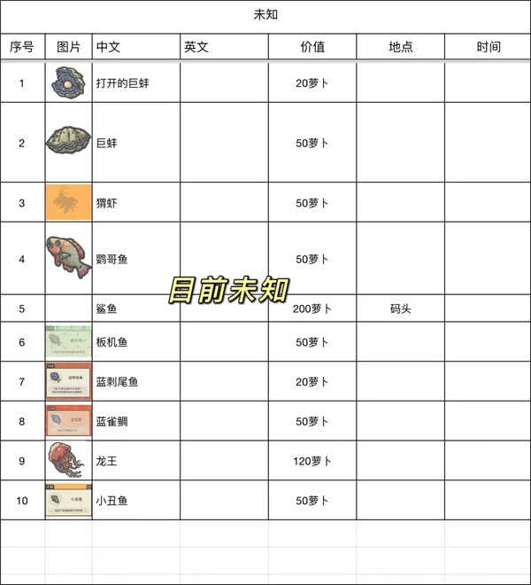 月兔漫游国际服钓鱼时间表图鉴