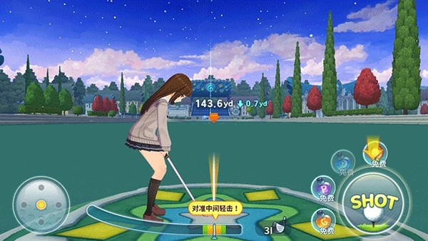 这是一段即时配对的对战玩法,但其中的细节设计相当讲究。比如地形方面就有多种区分,包括高低地势、普通地面、草皮、沙坑等不同类型,每种地形都需要搭配对应的球杆来击球。此外,风向和技能也是关键要素。玩家在球场上获取道具箱后,就能使用特殊道具,像虫洞道具可以让球直接穿越地形,精准飞往指定区域,这算是个挺有特色的系统。 每位主角都拥有独特的专属技能,擅长的领域也各有侧重:比如爱琳的击球准确率较高,但击球距离相对有限;而玛蒂娜则恰恰相反,她的击球距离很远,但准确率有待提升。角色的等级会直接影响自身的能力值与技能效果,因此建议新手先完成新手教学——通过教学不仅能熟悉玩法,还能让角色提升到一定等级,至于能力上的不足,还可以通过装备来进行补正。