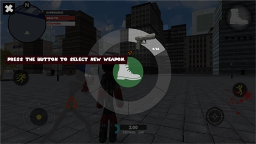 3、点击右上方可以切换手枪等装备与敌人进行战斗。