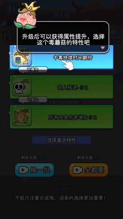 《吃不到我呀》里藏着不少有意思的玩法呢,就拿植物杂交系统来说,咱们能把不同品种的水果进行杂交,这样就能培育出全新又更强力的植物,每种植物都有自己独一无二的能力和外形。另外,这款游戏的画面精致又可爱,音效也活泼有趣,确实特别值得大家去玩一玩!