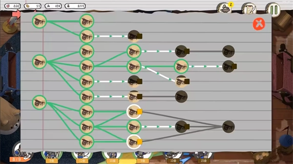 工人图标左下角的数字代表可派遣数量与数量上限,右上角小圈内数字代表闲置工人数量。