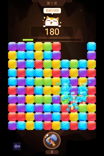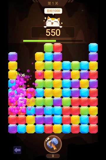 游戏界面简洁直观,操作简单易上手,玩家通过消除相同色块获取对应分数,消除数量越多得分越高;消除时的爆破烟花特效十分解压,还有酷炫的消除道具帮助玩家顺利通关。