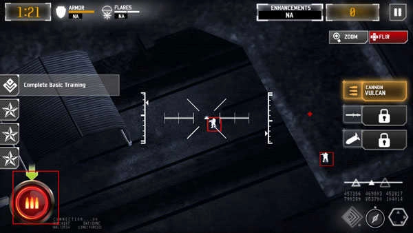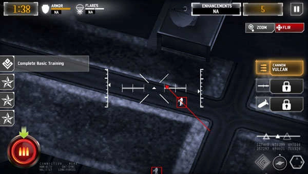 2、看完开场剧情后就会正式进入战斗状态,锁定目标后点击攻击按钮就能发射弹药
