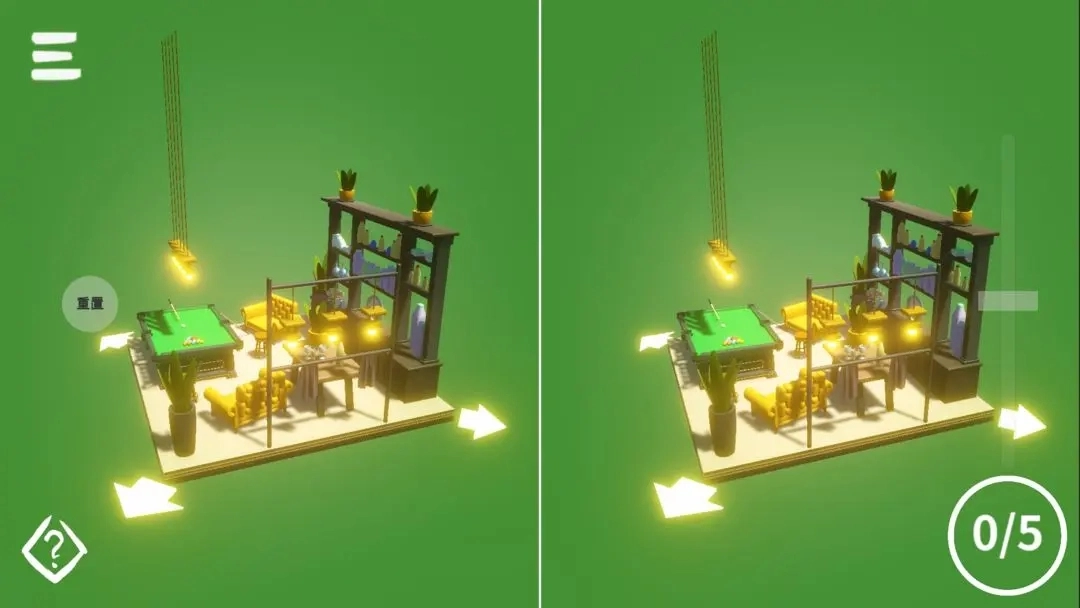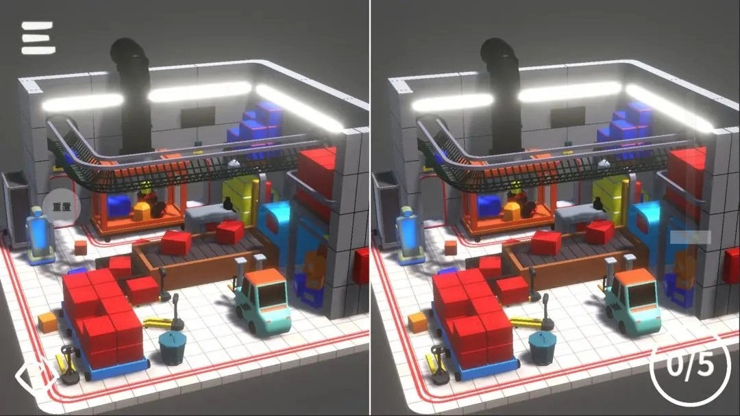 这是一款结合了3D立体视角和找茬玩法的益智游戏。