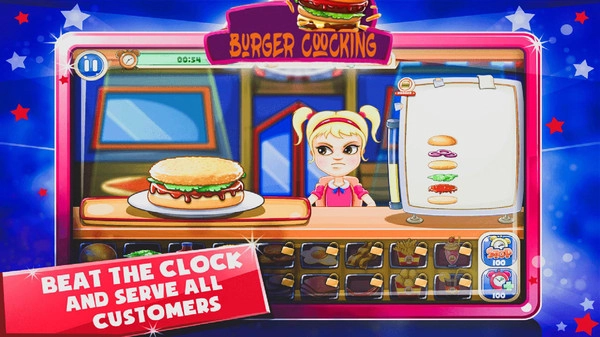 超级汉堡烹饪是一款卡通风格十足的模拟经营游戏。玩家的任务很简单,就是制作汉堡。顾客或许会提出各种奇特的要求,而作为汉堡店的经营者,你既要尽量满足他们的需求,又不能让顾客等待太久。加快制作速度,尽快满足客人的需要,这样才能赚取更多收益。