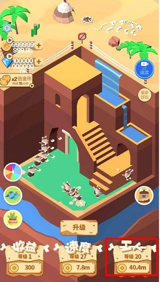 2、升级“速度”、“收益”,完成“工人升级”