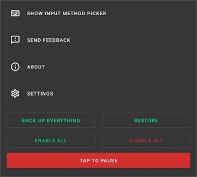 在这里,您可以一次暂停/取消暂停/启用/禁用所有键映射。