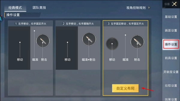 3、接着找到操作设置,点击自定义布局;