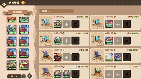 小屋储备有限,记得时常登录收取资源同时也要及时让没有体力的龙去龙舍休息,合理工作和休息才能利益最大化。