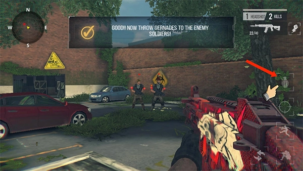 6、如图,我们获得了手雷,点击手雷图标就可以使用手雷攻击敌人,手雷可造成大面积攻击范围,