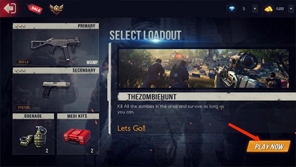 5、装备完成后,我们选择右下角【PLAYNOW】就可以开启僵尸模式了,