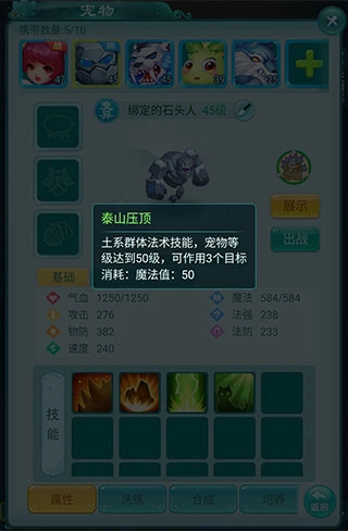 在升级途中,你还能获得一颗石头人的蛋,里面孵化出的是一只变异石头人,用起来也相当合适。这大概率是你拥有的第一只变异宠物,而且它属于群法宠,一次能攻击三个敌人,能显著提高团队的输出效率。