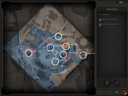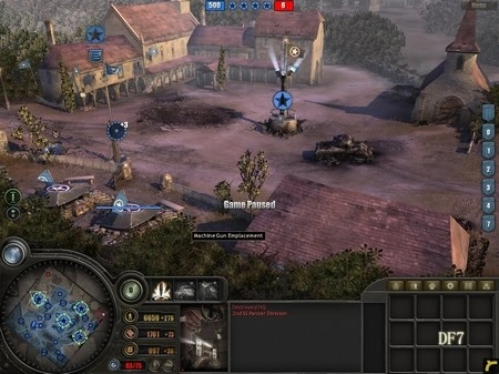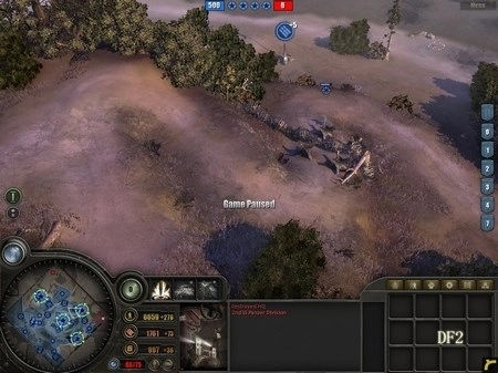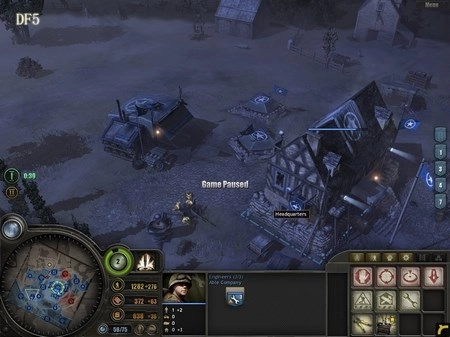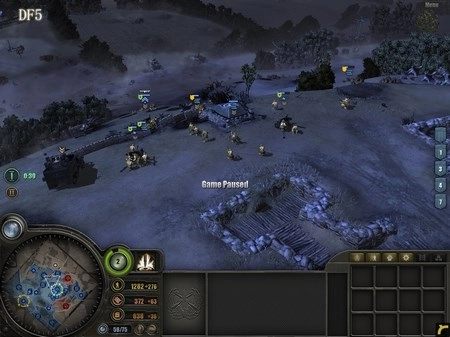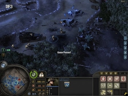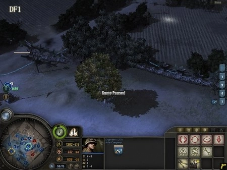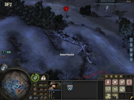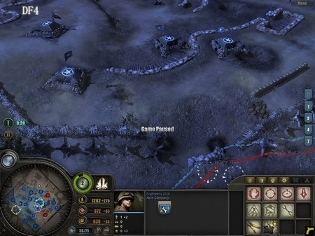 为什么需要半履带车呢?它的作用有两个:一是用来歼灭敌方步兵,二是补充己方兵力(估计很多人都不清楚靠近它时按“R”键有什么效果吧)。狙击手要驻守在DF5区域,DF5是整个防御体系的核心所在,这里将成为阻挡德军进攻的关键力量。所有重机枪都要部署在这里,把刚才由RM部队缴获的两门57mm火炮也安置到这里,同时将解救出来的游骑兵部队以及凯旋归来的RM部队全部部署到该区域。 大约5分钟后,德军会发起突袭,但他们的主要兵力会集中在西面,我们暂时不用理会。后山的工兵继续建造防御工事。经验值很快就能积累到1点,建议优先升级步兵防御工事,这样步兵就可以参与建造防御设施了。随后,调动DF5防区的3级RM部队,让他们顶着零星的炮火(这就是为什么用RM而不用工兵的原因),在DF5的盘山小道上修建防御工事,彻底切断德军上山的通道。
