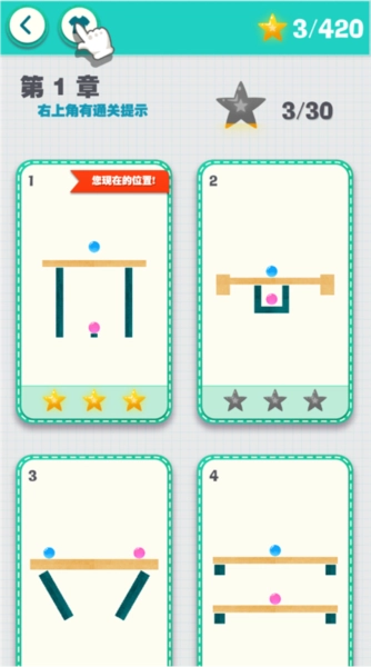 3、游戏以闯关玩法为核心,玩家需在关卡内达成指定要求,系统会依据完成情况评定星级。随着关卡推进,难度将逐步提升,玩家通过持续挑战解锁更多精彩关卡,在切割绳子、营救可爱球球的过程中,收获超棒的游戏体验。