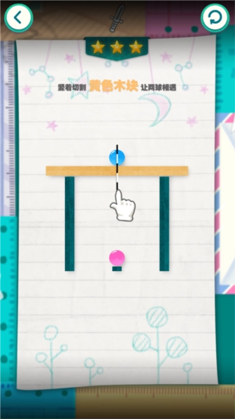 1、充满趣味的闯关体验,上一关可能让你抓耳挠腮,下一关说不定一眼就能看破关键。玩家需要用最少的切割次数让小球相遇,这就要求充分运用智慧与想象力,结合物理知识来快速通关。