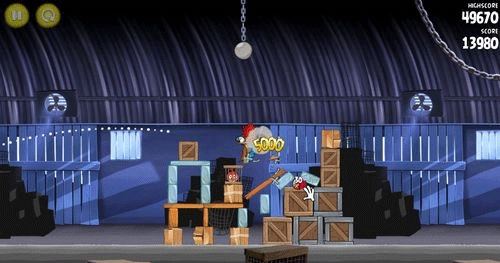 玩法:通过调节发射时的力量和角度来控制小鸟的运动轨迹,使小鸟撞击、毁坏各种不同的建筑物,最终拯救伙伴与消灭敌人。