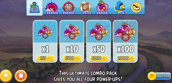 2、游戏里的特色道具为玩家提供了持续游玩的动力,例如MightyEagle这类道具只需购买一次即可永久使用,玩家还能通过强化道具,借助道具的助力突破一道道关卡。