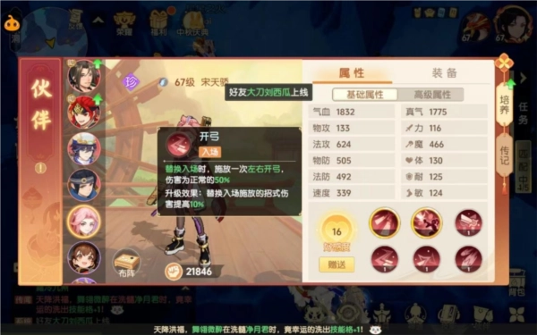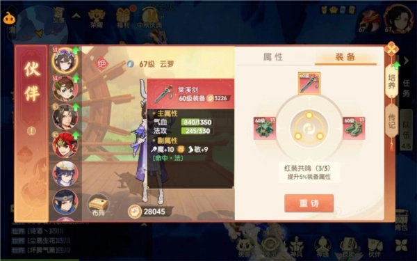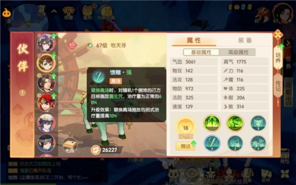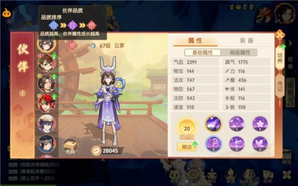 伙伴和人物类似,拥有基础属性、附加属性与高级属性。其中,基础属性和高级属性主要由伙伴的天赋及装备赋予——基础属性源于伙伴自身天赋,比如攻击、防御、速度等;装备则为伙伴提供附加属性(属性点)与高级属性(如封印命中、暴击率等),并且附加属性会叠加到基础属性之上。