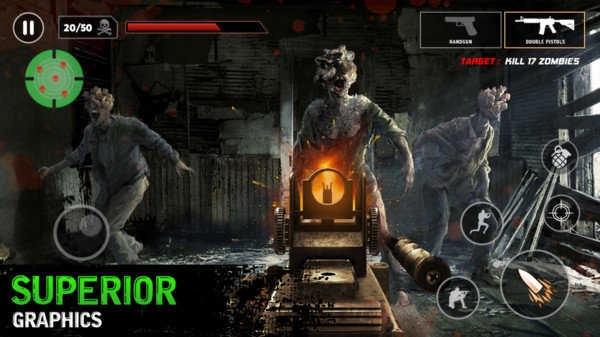 1.高清3D的游戏画面,搭配令人惊叹的图形效果与背景音效,为玩家带来全新的僵尸射击类游戏体验;