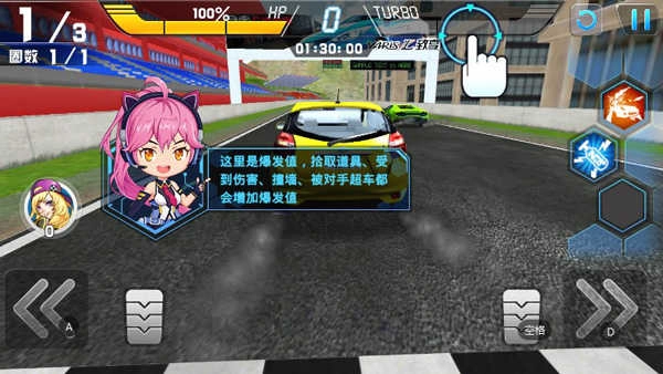 双模式操控适配各类玩家:虚拟摇杆兼顾细腻走线,一键式飘移+氮气连发则带来拳拳到肉的节奏快感。