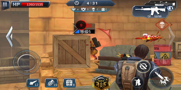 无尽模式融合人质营救与丧尸围城双重设定,通关奖励钻石可直接用于武器强化,挑战过程紧张连贯,打断。