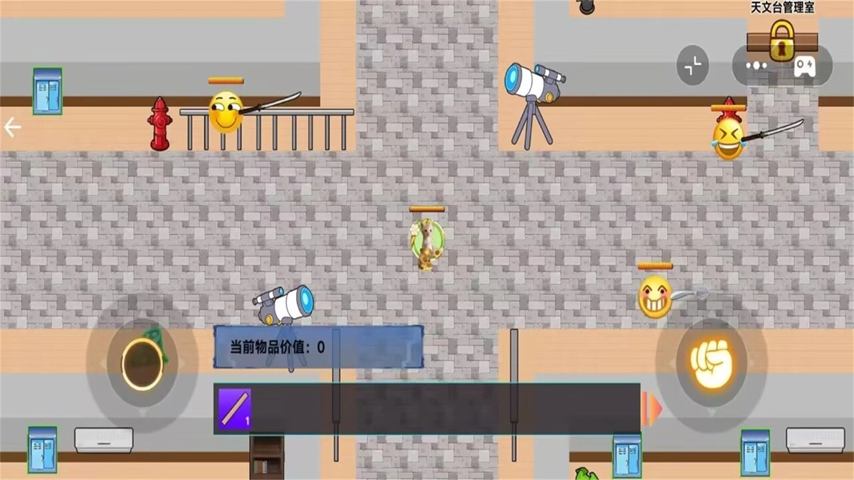 3、应对各类威胁,与其他玩家竞争资源,躲避守卫与陷阱,通过走位、投掷物化解危机,保障自身安全。