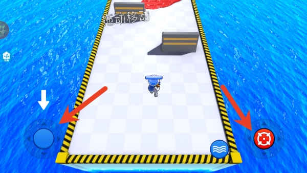 1、借助虚拟摇杆操控角色移动,利用射击按钮喷射油漆,以此覆盖地面并争夺关键区域;