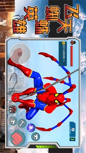 借助蜘蛛侠的特殊能力,调节蛛丝的长短,在城市里自在翱翔,尽情体验穿梭的快乐;