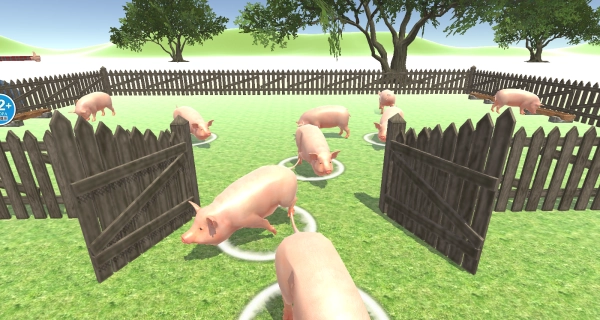 2、猪猪把猪圈门打开了,你需要将它们全部给抓回来。