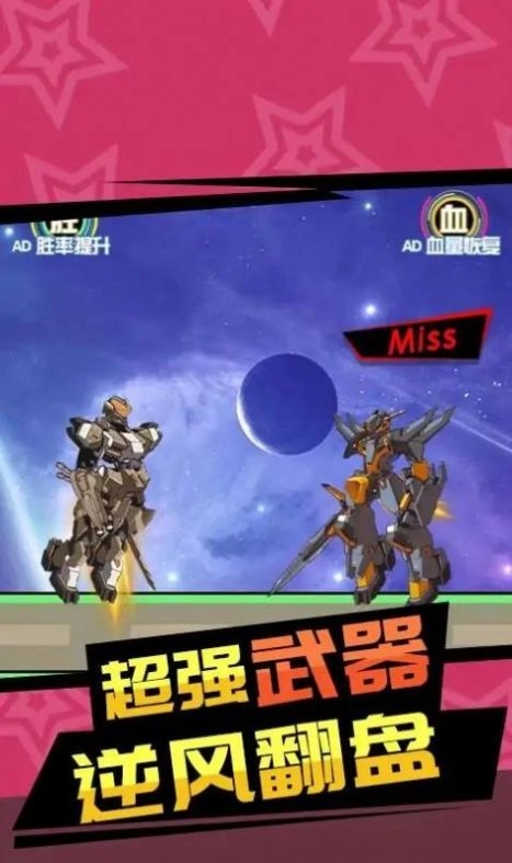 更多>高人气机甲对战游戏专题上线,游戏中的机甲角色需要通过收集足够的碎片来解锁,玩家可以通过完成任务!全新地图还能合成新式武器装备,放置玩法随机挑战,轻松挂机离线也能获取奖励。快来体验全新的机甲对战类游戏吧!
