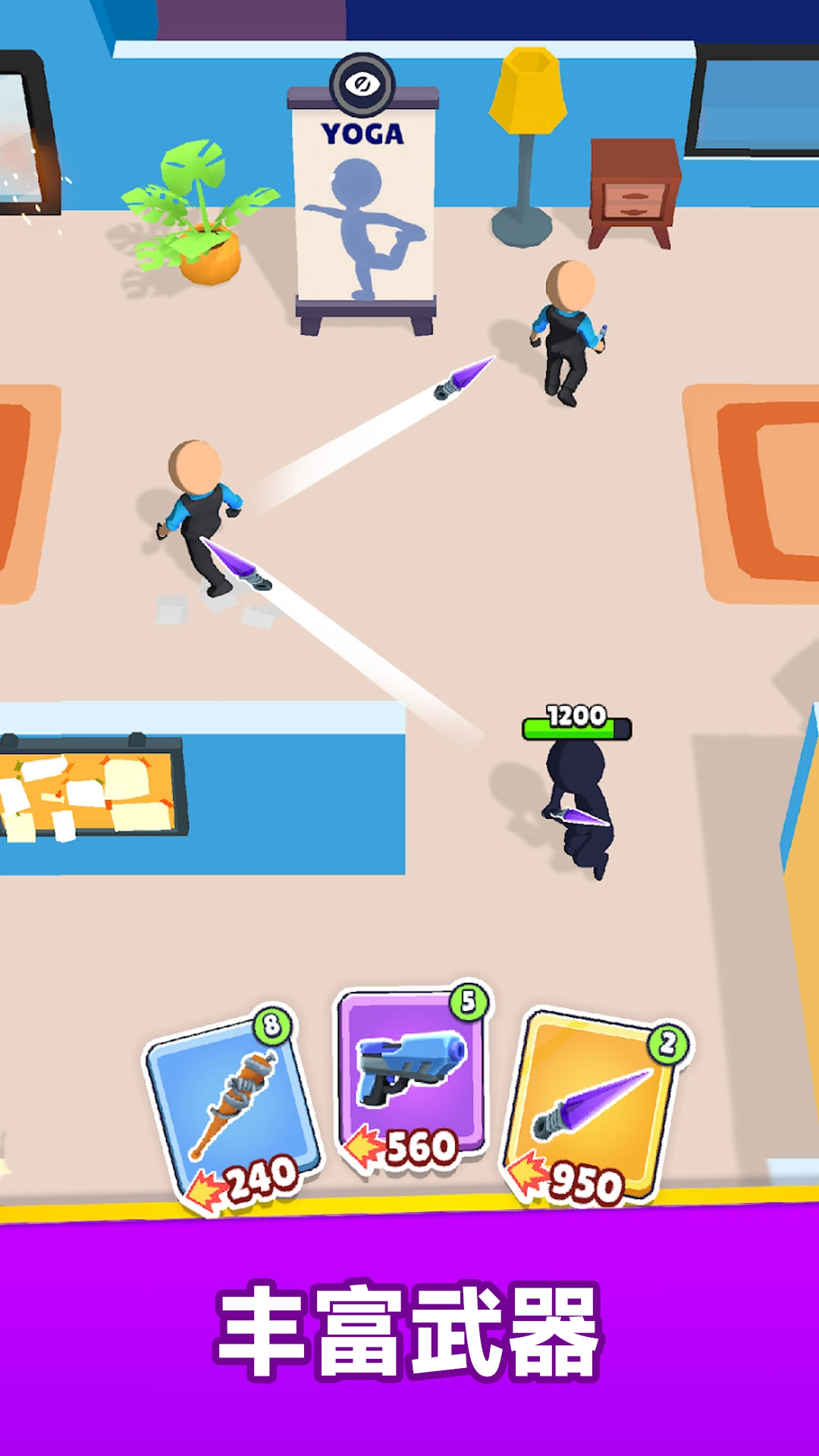 《刺客暗杀行动》是一款主打潜行暗杀玩法的策略闯关游戏。游戏采用卡通画风与竖屏操作,以轻松的氛围让玩家专注于潜行挑战。玩家需要控制角色在房间中移动,借助环境物品隐藏自己,避开守卫的视线来完成暗杀任务,还能解锁并升级装备、学习多种技能,以此应对越来越复杂的关卡。