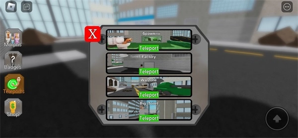 第三个操作栏为传送,目前有四个地方可以进行传送,点击对应的地点即可传送,可以用来躲避马桶人的追击