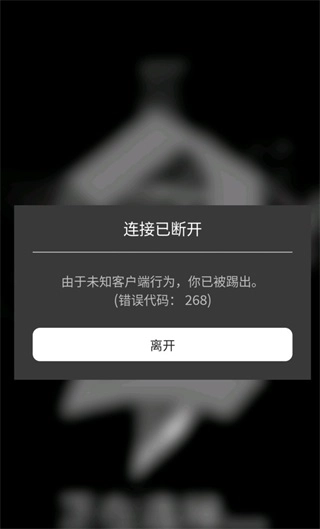 Q:为什么无法进入,提示连接已断开,您已被踢出?错误代码268